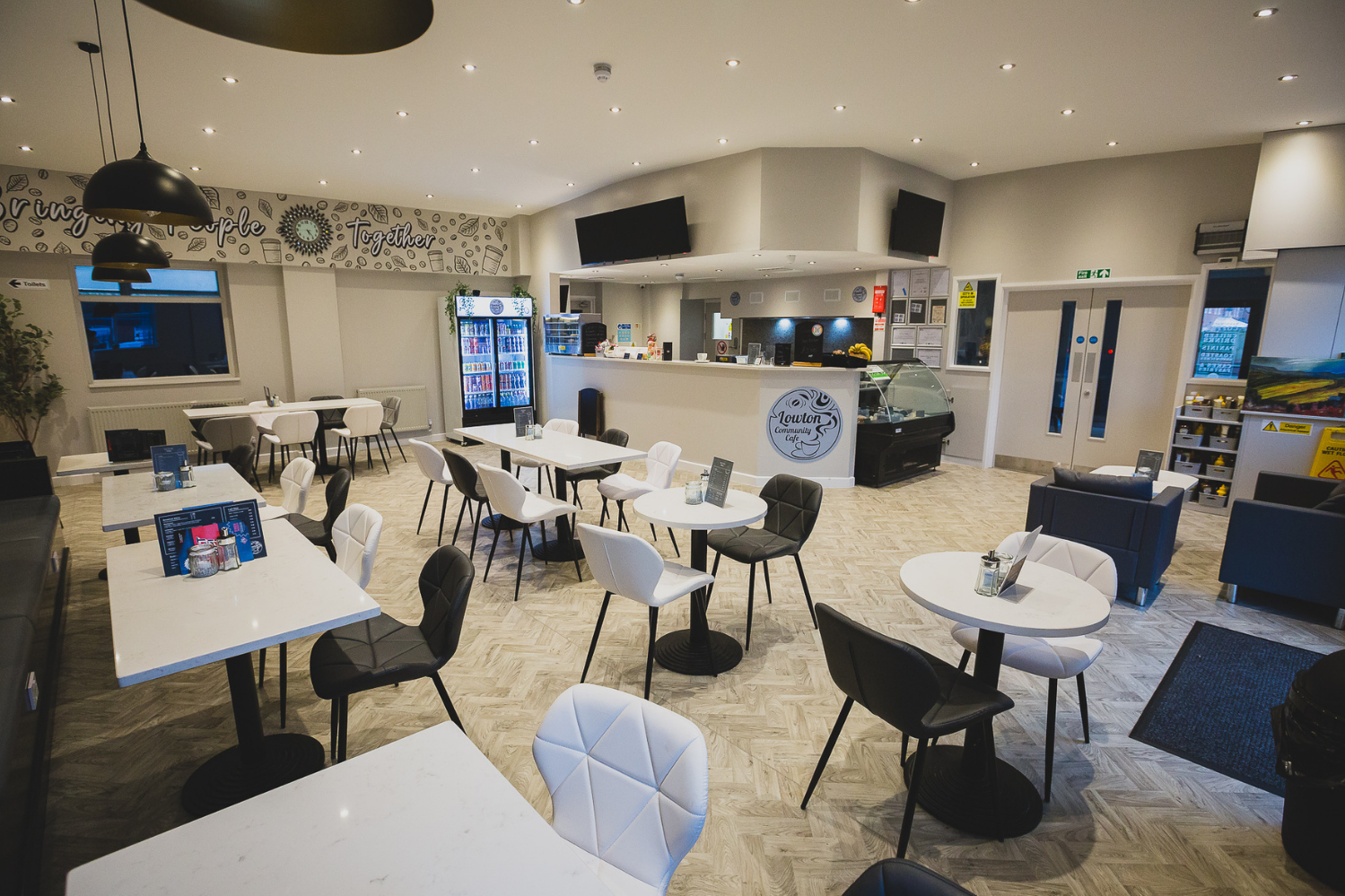 A bright, open space perfect for informal gatherings, meetings, or small events. The café comfortably seats around 40 people at granite tables and features a modern kitchen, available for use by the café team. Its welcoming atmosphere makes it ideal for community groups, workshops, or social events where people can connect, relax, and enjoy the space.